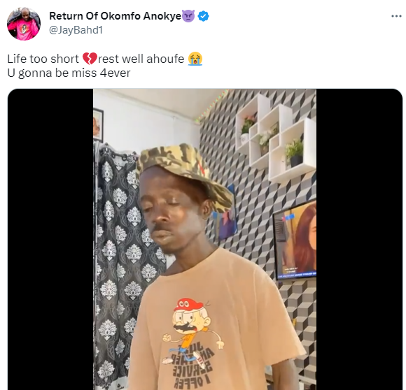 “It is alleged that one of Ghana’s entertained tiktoker Ahuofe is reportedly dead . But this video was posted yesterday in less than 24hours. The question is what happened. May his soul rest in peace #ahoufe”