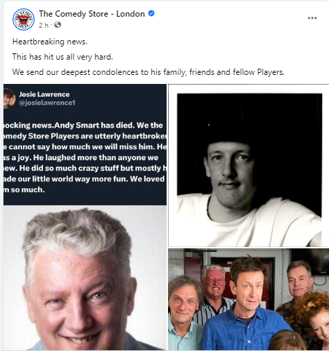 His fellow Comedy Store Player Josie Lawrence tweeted: “Shocking news. Andy Smart has died. We the Comedy Store Players are utterly heartbroken. We cannot say how much we will miss him. He was a joy. He laughed more than anyone we knew. He did so much crazy stuff but mostly he made our little world way more fun. We loved him so much.”