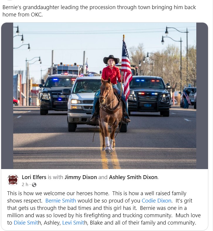 Buffalo Oklahoma Firefighters Association confirmed the tragic accident happened to Chief Bernie Smith on their Facebook page and the statement reads the following,