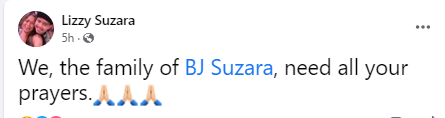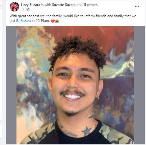 Lizzy Suzara, his mother, posted the heartbreaking information on Facebook.