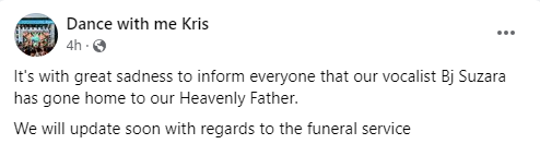 On Facebook, Dance with me Kris Band also announced the heartbreaking news and planned to provide updates on the funeral service soon.