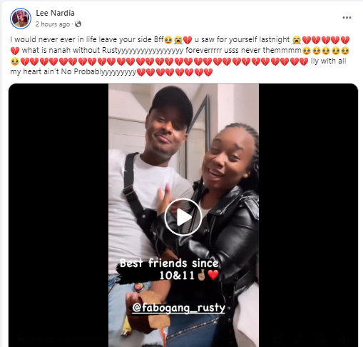 His Girlfriend Lee Nardia wrote: “I would never ever in life leave your side BffπŸ₯ΊπŸ˜­πŸ’” u saw for yourself lastnight πŸ˜­πŸ’”πŸ’”πŸ’”πŸ’”πŸ’”πŸ’” what is nanah without Rustyyyyyyyyyyyyyyyyy foreverrrrr usss never themmmmπŸ₯ΊπŸ₯ΊπŸ₯ΊπŸ₯ΊπŸ₯ΊπŸ₯ΊπŸ’”πŸ’”πŸ’”πŸ’”πŸ’”πŸ’”πŸ’”πŸ’”πŸ’”πŸ’”πŸ’”πŸ’”πŸ’”πŸ’”πŸ’”πŸ’”πŸ’”πŸ’”πŸ’”πŸ’”πŸ’”πŸ’”πŸ’”πŸ’”πŸ’”πŸ’”πŸ’”πŸ’”πŸ’”πŸ’” Ily with all my heart ain’t No ProbablyyyyyyyyyπŸ’”πŸ’”πŸ’”πŸ’”πŸ’”πŸ’”πŸ’”πŸ’”