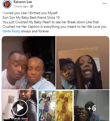 She wrote: “I Loved you Like I Birthed you Myself Son Son My Baby Best-friend Since 10 You just Crushed My Baby Heart to see her Break down Like that Crushed me Her Caption is everything you meant to her We Love you Vante Rusty always and forever”