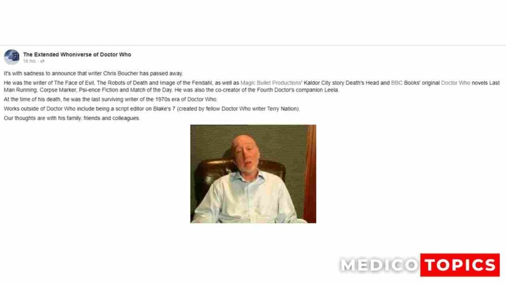 Star Cops Creator Chris Boucher passed away. Let’s see How did British television screenwriter Chris Boucher die and Chris Boucher cause of death in detail.