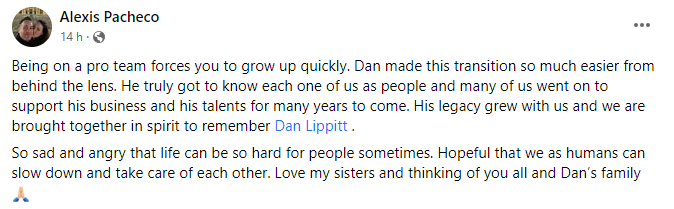 Being a pro competitor makes you grow quickly. Dan’s assistance behind the camera helped with this shift. Since he took the time to get to know each of them, many of them continued to support his endeavors and his abilities for many years to come. His legacy spread along with everyone, and now we are all here in spirit to honor Dan Lippitt.
