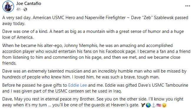 We grieve the passing of a great accordionist and Marine today, but we also value all David Szablewski gave us during his life, including priceless memories and motivational tales that will endure long after he is gone. Everyone is currently worn out from grieving for David Szablewski, thinking about him, praying for his afterlife, and sharing condolences on social media, including friends and family.