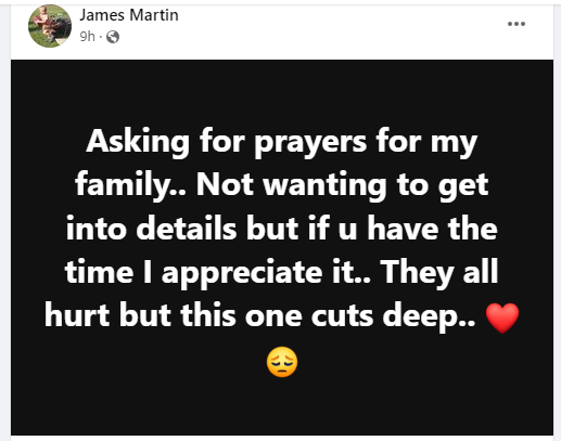In a statement, his wife Angie Roberts and his cousin James Martin expressed their sorrow and asked with everyone to pray for them at this difficult moment.