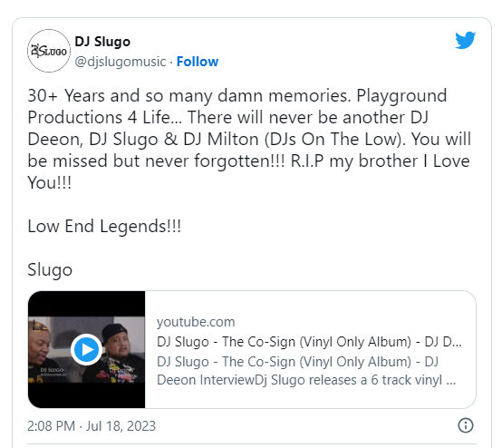 The heartbreaking information was posted on the Legendary DJ Deeon Fanpage, which was managed by his friend Jim.
