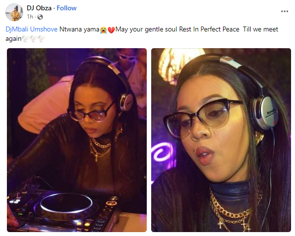Eesy Dee Woza wrote: “Rest easy dj Mbali Mshove it’s sad hey”