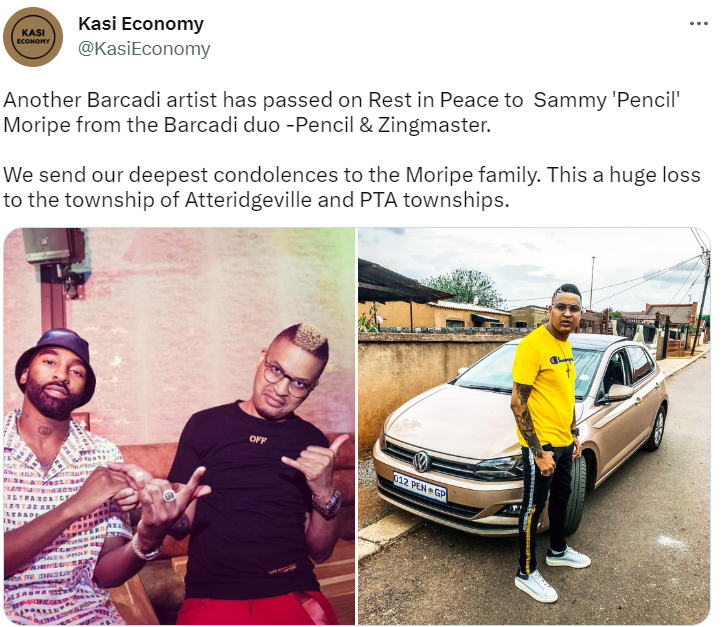 Another Barcadi artist from the Pencil & Zingmaster Barcadi duo, Sammy Moripe, has passed away in Pretoria. Sammy Moripe passed away after fighting cancer for almost three years, according to sources who replied to our DM.
