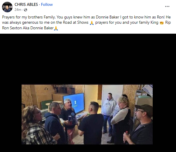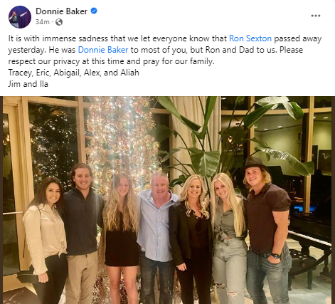 “It is with immense sadness that we let everyone know that Ron Sexton passed away yesterday. He was Donnie Baker to most of you, but Ron and Dad to us.