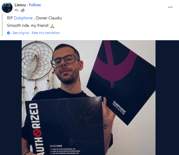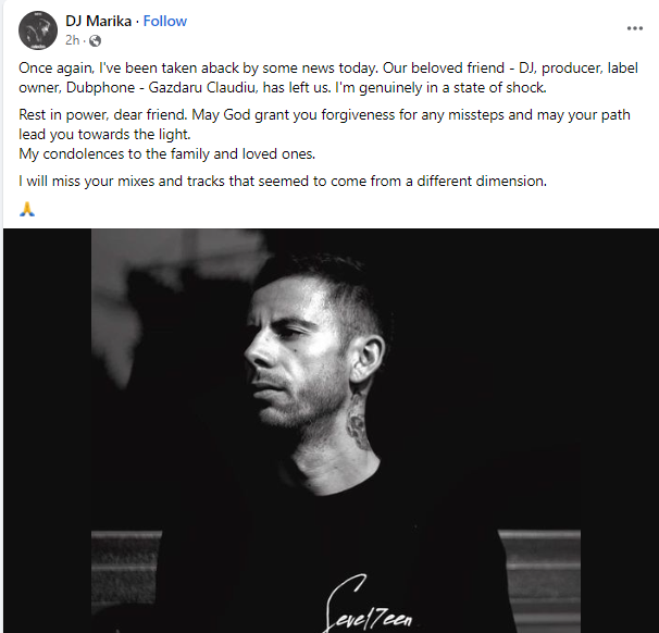 “Once again, I’ve been taken aback by some news today. Our beloved friend – DJ, producer, label owner, Dubphone – Gazdaru Claudiu, has left us. I’m genuinely in a state of shock.
