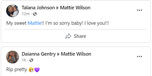 However, friends of Mattie Wilson have started leaving condolence messages on her Facebook page.