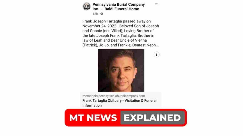 Pennsylvania Burial Company has made a public announcement on Frank Tartaglia’s passing on Thursday, November 24, 2022.