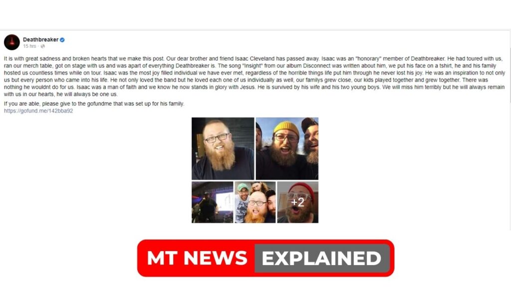 Member of Deathbreaker Music Band Isaac Cleveland passed away.