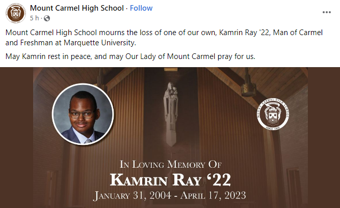 The passing of student Kamrin Ray is being mourned by the Mount Carmel High School community.