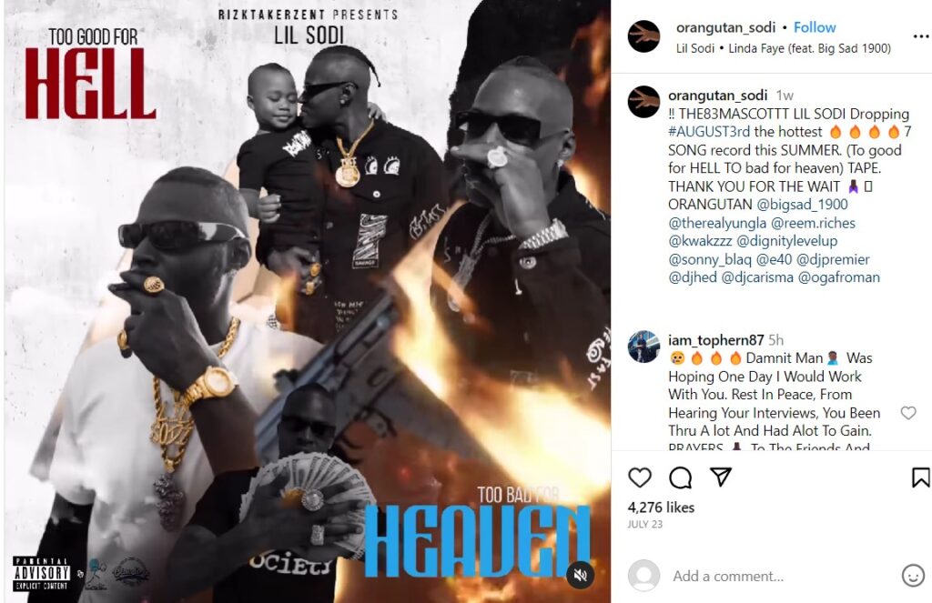 He made friends with Boskoe 100 of the Queen Street Bloods, an Inglewood, California-based street gang. The project “The Best Of Both Rags” by Lil Sodi and Bigfase 100 makes reference to the blood (red rags) and crips (blue rags).