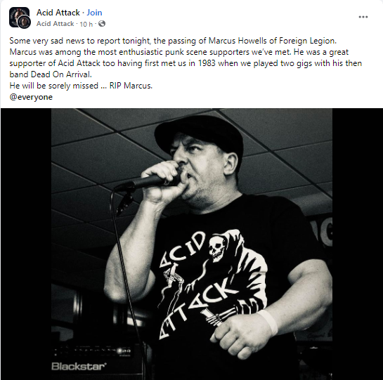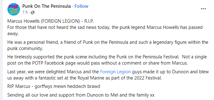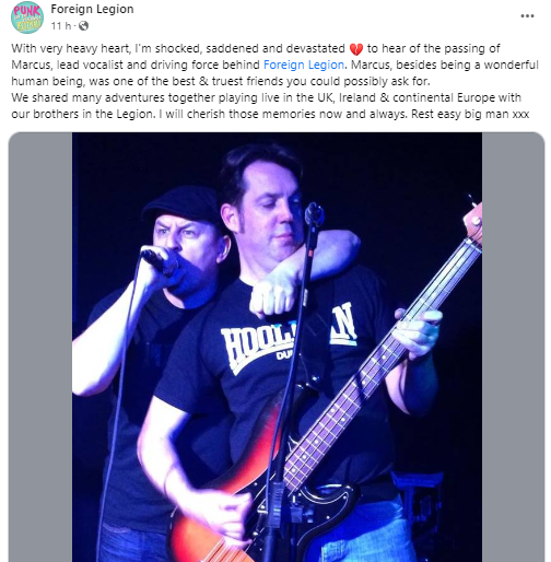 On June 21, 2023, Marcus Howells of the Foreign Legion passed away suddenly. Marcus was one of the most ardent punk scene supporters many had ever encountered.