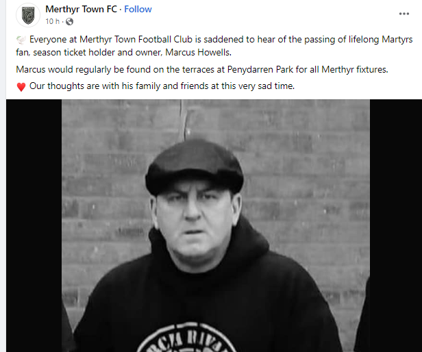 Marcus would frequently be spotted on the Penydarren Park terraces, where he would watch every Merthyr fixture. His everlasting passion for punk music and all of the participating bands was evident; he always gave it his all and displayed unyielding dedication.