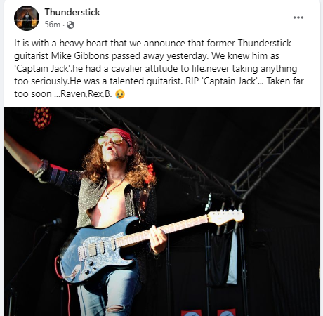 “It is with a heavy heart that we announce that former Thunderstick guitarist Mike Gibbons passed away yesterday.