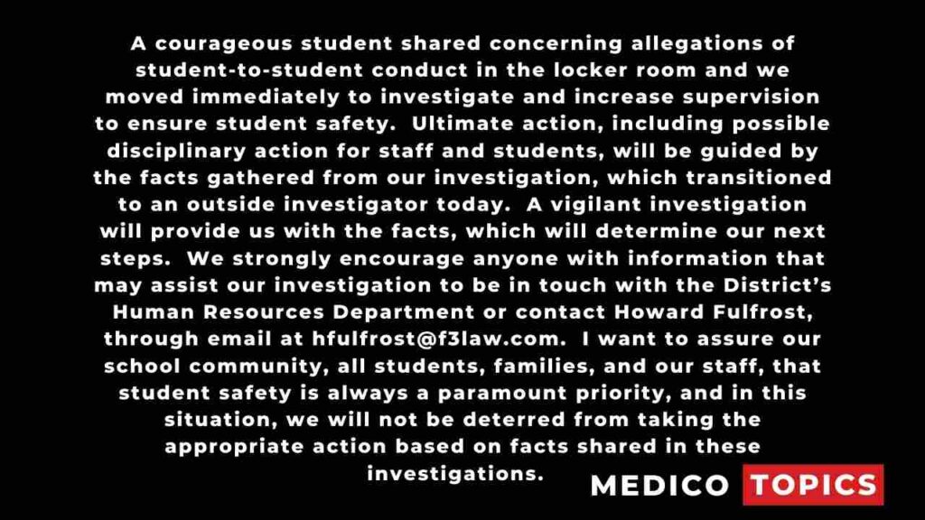 In a statement posted Monday night after he presided over a virtual conference for parents, Doyle stated, “A courageous student reported extremely alarming claims of student-to-student behavior in the locker room. We moved swiftly to investigate and improve supervision to assure student safety.”