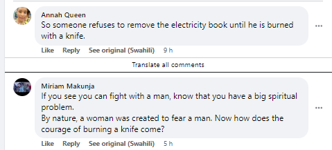 Another said: “When, as a woman, you find yourself fighting a man know there is a big problem, because women were created to be humble. How does it get to the level of stabbing one?”