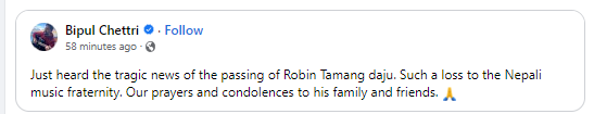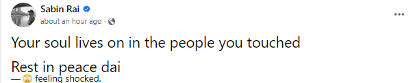 Vocalist Smruti Thulung wrote: “Its so hard to believe that you’re no more among us dai