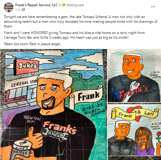 Tomaso Schena, a Plaistow native who now calls Haverhill home, claimed that when he was a little kid, his grandfather taught him the craft of sketching, and that he has since continued to do so. He views it as a chance to make new friends and build new relationships.