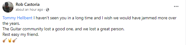 Guitarist Steven Rivera wrote: “This is just unbelievable news…Brother, we just hung out a few weeks ago.. we caught up and and had a few laughs…Fly to the angelsAll the stars in the nightShine in your name Tommy Hellbent ![]()