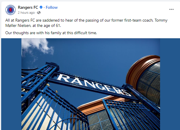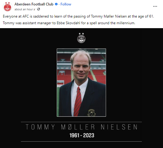 Casten Werge wrote: “So very sad. Been knowing Tommy all my adult life He was a man with a huge football heart, who always took care of his stuff and was always nice to have a football chat with. Will miss bumping into him around football stadiums. Condolences to Tommy’s family and close friends”