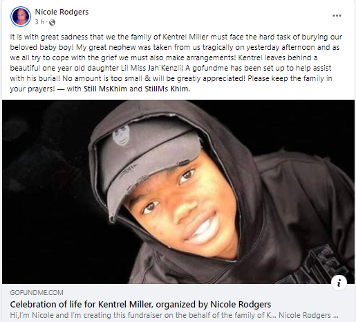 One of Kentrel Miller’s family members provided information about the incident on Facebook and stated that he leaves behind a daughter who is one year old.