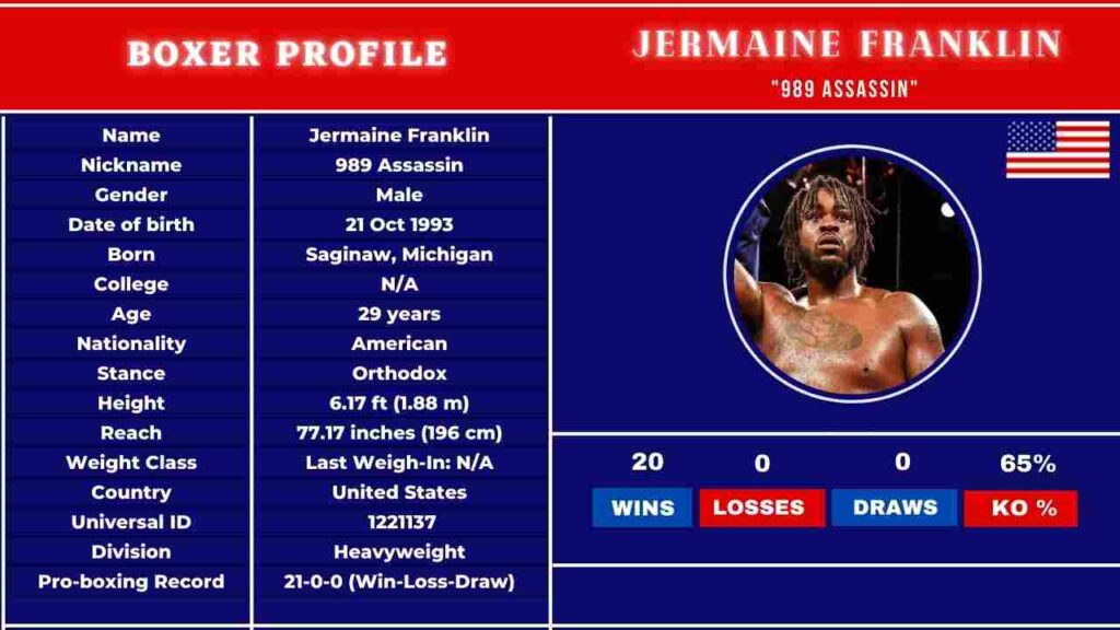 Currently, Jermaine Franklin has a record of 21 victories, 0 losses, and 0 draws.
