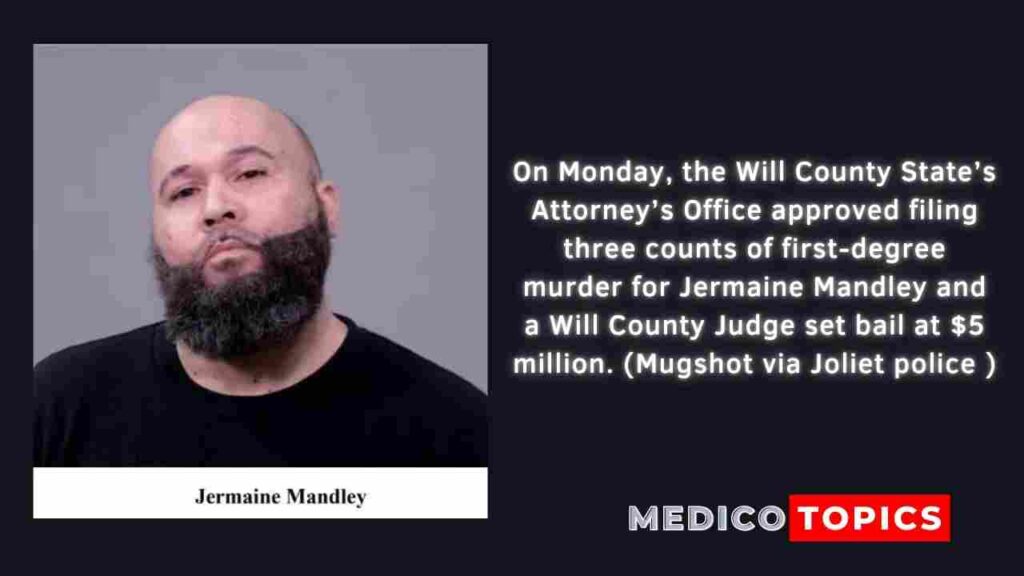 Jermaine Mandley, 48, was detained and charged with three charges of first-degree murder, according to Joliet police. His bond was set at $5 million by a judge in Will County.